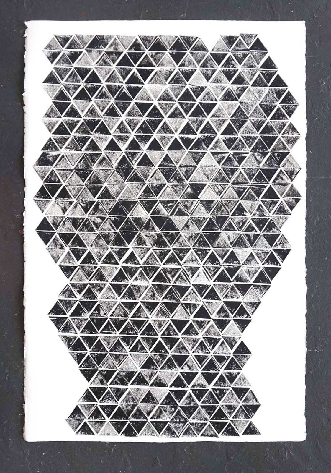 I have been working on a series of monoprints that I have been making by using a couple very simple rubber stamps. I started by using a triangular shaped stamp and them moved on to the circular one this week. The prints are fun and geometric and I plan to continue the series in color eventually.